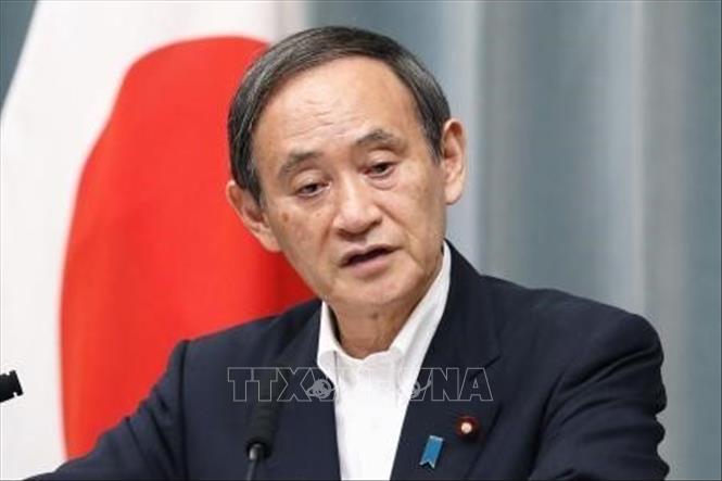 Chánh Văn phòng Nội các Nhật Bản Yoshihide Suga phát biểu tại cuộc họp báo ở Tokyo. Ảnh: Kyodo/TTXVN