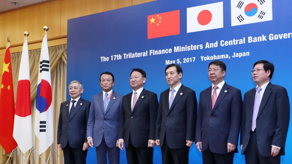 Các Bộ trưởng Tài chính và Thống đốc Ngân hàng Trung ương của 3 quốc gia cam kết "chống lại tất cả các hình thức bảo hộ thương mại". Tuyên bố được đưa ra sau hội nghị thường niên của Ngân hàng Phát triển châu Á (ADB), theo tạp chí Nikkei của Nhật Bản.