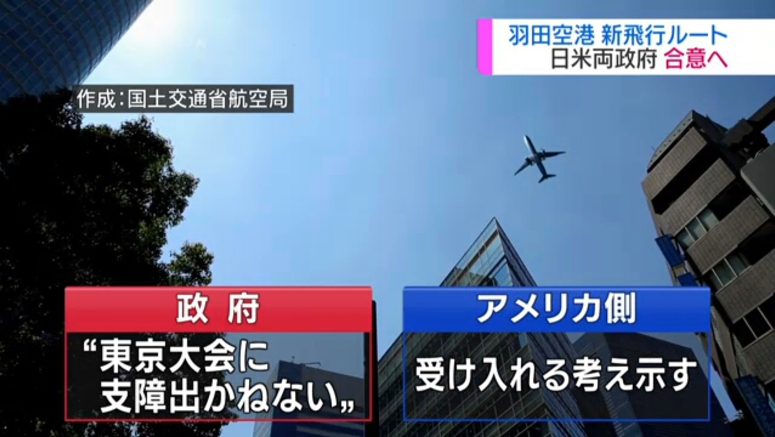 Phía Nhật Bản cho rằng các tuyến đường mới là cần thiết để cho phép nhiều chuyến bay quốc tế hơn tại sân bay Haneda, cũng như các tuyến phải đi qua trung tâm Tokyo và không phận gần đó do Căn cứ không quân Yokota của Hoa Kỳ kiểm soát. Theo chính phủ Nhật Bản, Thế vận hội Tokyo có thể gặp nguy hiểm nếu các đường bay mới không được mở ra.