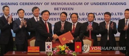 LG Display và các quan chức Việt Nam ký thỏa thuận đầu tư tại Việt Nam vào đầu tháng 4/2016. Ảnh: Yonhap