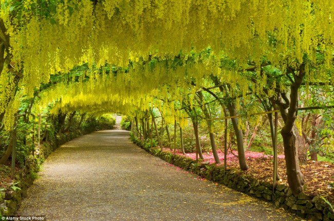 Du khách tới thăm khu vườn Bodnant ở Clwyd để chiêm ngưỡng đường hầm hoa kim tước tuyệt đẹp.