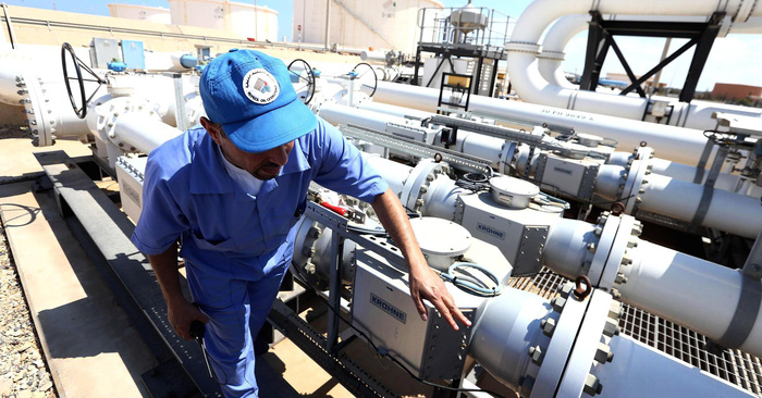 Một người công nhân dầu khí đang kiểm tra đường ống dẫn dầu ở Zawiya, Libya (ảnh minh họa) - Ảnh: AFP