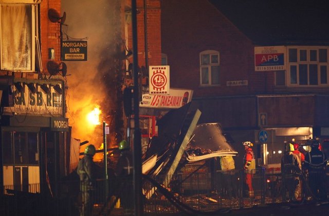 Các dịch vụ khẩn cấp tại khu vực xảy ra vụ nổ ở thành phố Leicester, Anh. Ảnh: Reuters