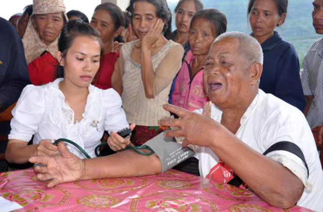 | Thanh niên tình nguyện Quảng Nam khám bệnh và cấp thuốc miễn phí cho người dân Lào vùng biên giới - Ảnh: T.Vũ |