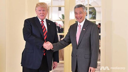 | Tổng thống Mỹ Donald Trump và Thủ tướng Singapore Lý Hiển Long. Ảnh: CNA. |