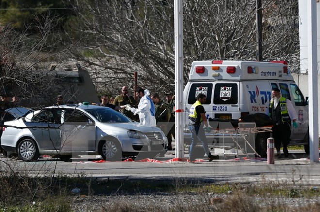 Hiện trường một vụ nổ súng giữa người Palestine và Israel tại Bờ Tây. (Nguồn: AFP/TTXVN)