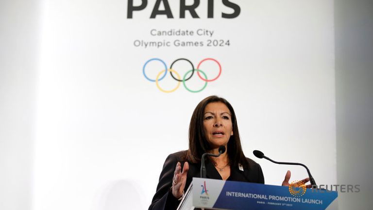 Thị trưởng Paris Anne Hidalgo phát biểu trong buổi khởi động chiến dịch quốc tế để Paris đăng cai Thế vận hội Mùa hè 2024 hôm 3/2. Ảnh: Reuters