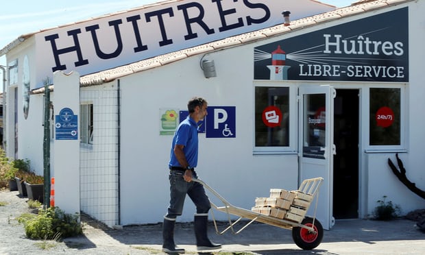 Ngư dân Tony Berthelot vận chuyển hàu đến máy bán tự động của mình. Ảnh: The Guardian