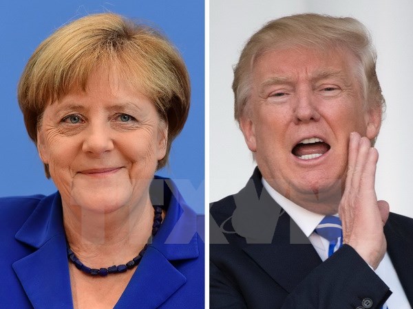 Thủ tướng Đức Angela Merkel - trái và Tổng thống đắc cử Mỹ Donald Trump - phải. (Ảnh: AFP/TTXVN)