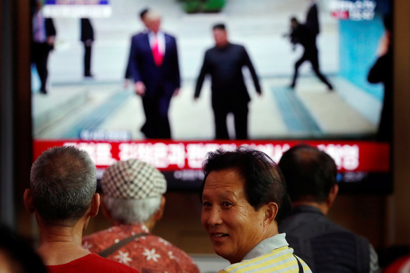 Người dân ở thủ đô Seoul (Hàn Quốc) xem hình ảnh lãnh đạo Mỹ và Triều Tiên gặp nhau ở Bàn Môn Điếm ngày 30-6 - Ảnh: Reuters