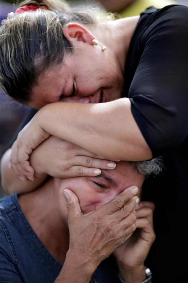 Ngày 3/1: Bà Diana Pinheiro (trên) và cô con gái Rose đau đớn sau khi nhận được tin cậu con trai Ronei của mình là một trong những tù nhân đã thiệt mạng trong một cuộc bạo loạn nhà tù ở Manaus, Brazil hôm 3/1. Ảnh: REUTERS / Ueslei Marcelino