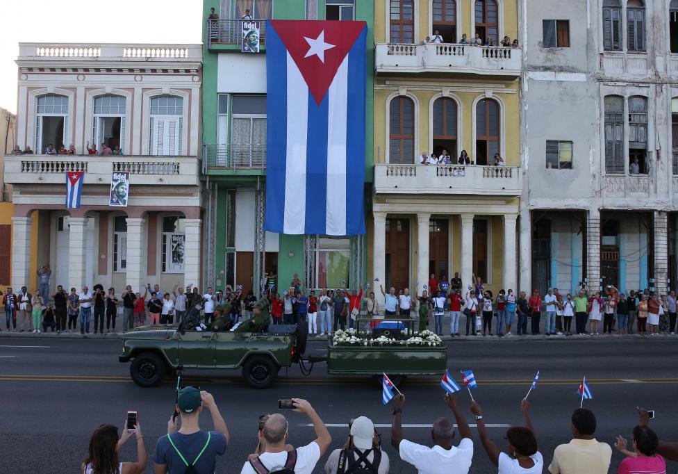Một chiếc xe quân sự chở tro cốt của cố Tổng thống Cuba Fidel Castro bắt đầu cuộc hành trình 3 ngày dài 950 km, đi qua 13 trong số 15 tỉnh để về nơi an nghỉ cuối cùng ở thành phố Santiago, Cuba. REUTERS / Alexandre Meneghini