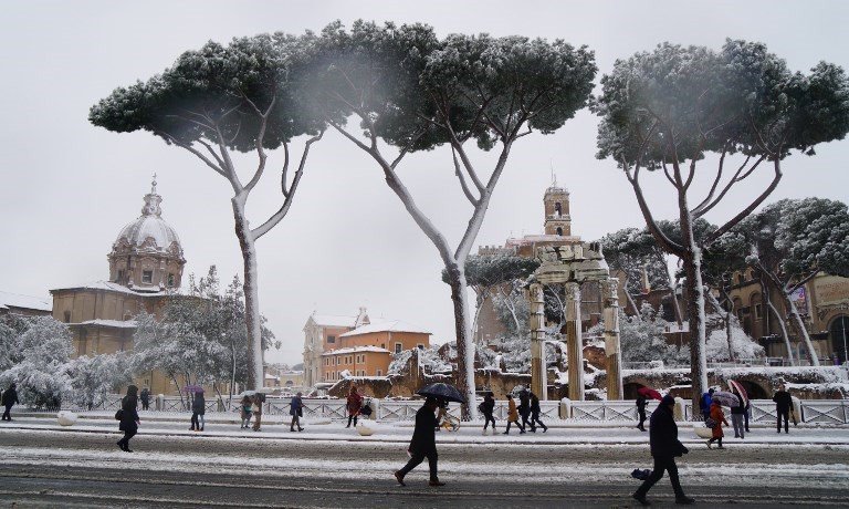 HNN.VN - Lần đầu tiên sau 6 năm kể từ tháng 2/2012, Rome vừa trải qua một đợt rét kỷ lục kèm theo bão tuyết khi gió lạnh từ Siberia (Nga) lan rộng khắp châu Âu, làm nhiệt độ ở khu vực này giảm đi nhanh chóng.