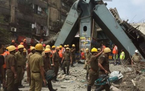 | Các nhân viên cứu hộ có mặt tại hiện trường vụ sập cầu vượt ở Ấn Độ. Ảnh BBC |