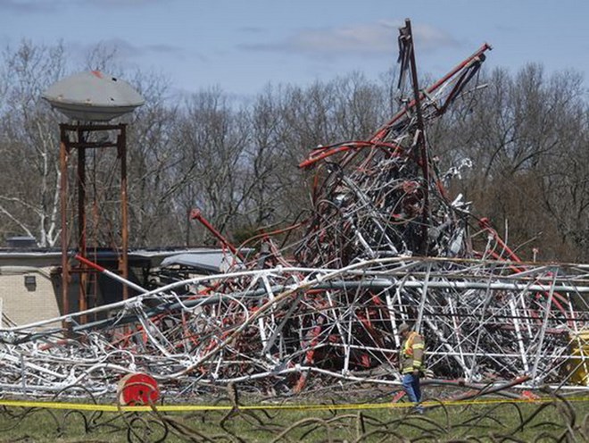 Hiện trường vụ sập tháp truyền hình. (Nguồn: News-Leader)