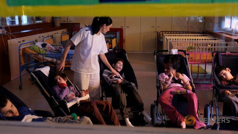 Một y tá chăm sóc trẻ em khuyết tật tại Trung tâm Bảo vệ Trẻ sơ sinh, Trẻ em và Thanh thiếu niên ở thủ đô Belgrade, Serbia ngày 8/6. Ảnh: Reuters