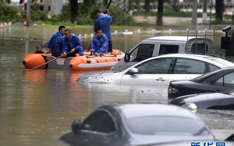 Nước ngập sâu tại thành phố Ôn Lĩnh, tỉnh Chiết Giang. Ảnh: Tân Hoa xã.
