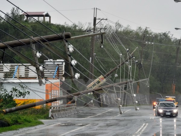 Nhiều cột điện bị quật đổ khi cơn bão Meranti quét qua vùng lãnh thổ Đài Loan ngày 14/9. Nguồn: AFP