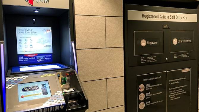Bốt gửi thư tự động SAM được lắp đặt tại bưu điện GPO Singapore. Ảnh: CNA