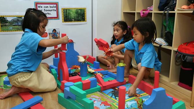 Học sinh của trường mầm non MOE tại Punggol. Ảnh: CNA News