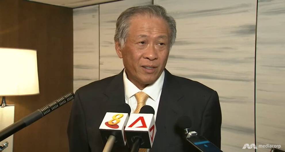 Bộ trưởng Quốc phòng Singapore Ng Eng Hen trả lời báo giới. Ảnh: CNA