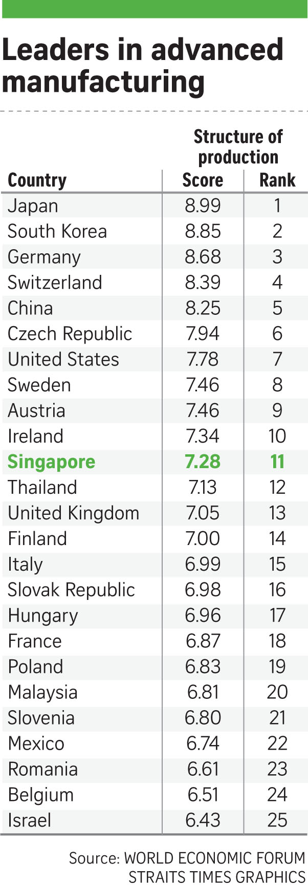Singapore đã được xác định trong số 25 "nước dẫn đầu trong ngành chế tạo hiện nay và cũng sẽ có vị trí tốt về mặt sản xuất trong thời gian tới".