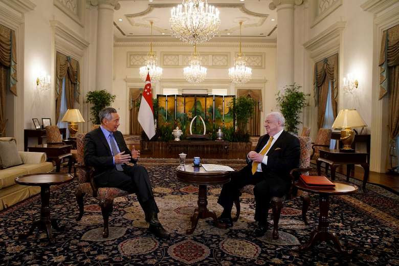 Thủ tướng Singapore Lý Hiển Long (trái) trong cuộc phỏng vấn của hãng thông tấn Nga TASS. Ảnh: Straitstimes