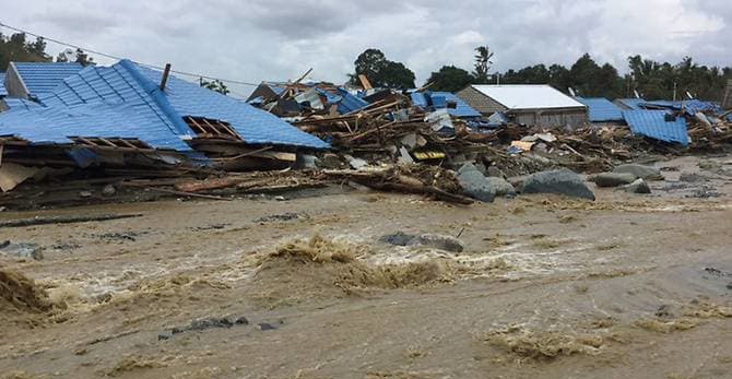 Nhiều ngôi nhà bị lũ cuốn trôi ở Sentani, gần thủ phủ Jayapura của tỉnh Papua, Indonesia. Ảnh: AFP