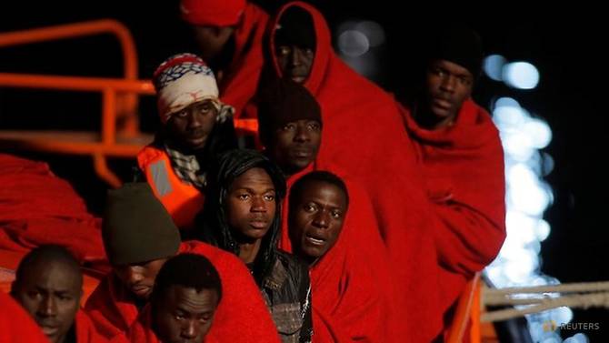 Một nhóm người di cư ngoài khơi biển Địa Trung Hải. Ảnh: Reuters