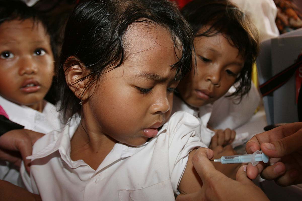 Trẻ em được chủng ngừa ở thủ đô Jakarta, Indonesia. Ảnh: AFP