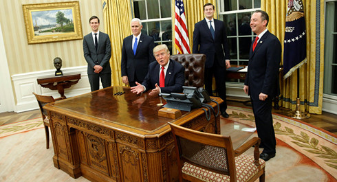 Trong ngày đầu tiên sau khi nhậm chức Trump không chỉ kịp thực hiện lời hứa chính trị liên quan đến Churchill, mà còn thay đổi bố cục trong Phòng Bầu dục.