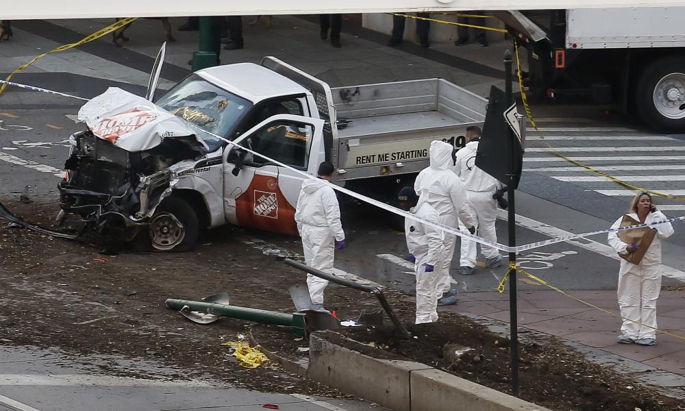 Đã có ít nhất 8 người chết sau khi một người đàn ông lái một chiếc xe tải lao vào làn đường dành cho người đi bộ và đi xe đạp dọc bờ sông Hudson, Manhattan vào chiều hôm qua, thứ ba 31/10/2017. Chiếc xe đã lao qua hơn 20 dãy nhà và chỉ dừng lại sau khi đâm vào một xe buýt trường học, chỉ cách khu vực tưởng niệm ở Trung tâm Thương mại Thế giới, nơi xảy ra vụ khủng bố 11/9 vài chục mét. Kết quả điều tra ban đầu cho thấy, đây là một chiếc xe tải cho thuê.