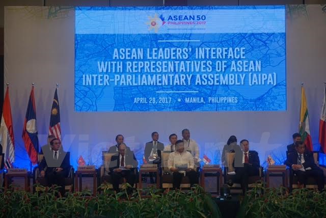 Hội đồng liên minh nghị viện Đông Nam Á(AIPA) gặp gỡ và trình bày Thông điệp tới các nhà lãnh đạo ASEAN trong khuôn khổ hội nghị cấp cao ASEAN lần thứ 30 tại Manila, Philippines chiều 29/4. (Nguồn: Mỹ Bình/Vietnam+)