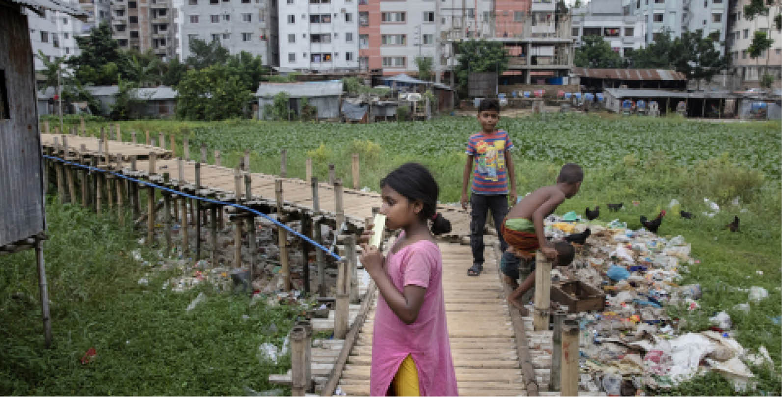 Cuộc sống thường nhật của cư dân sống trong khu ổ chuột Sujat Nagar ở thủ đô Dhaka, Bangladesh. Ảnh: WB