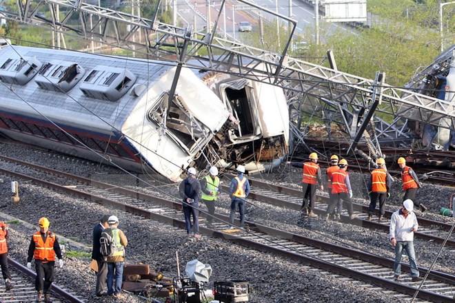 Tàu chở khách của Hàn Quốc bị trật bánh, 9 người thương vong