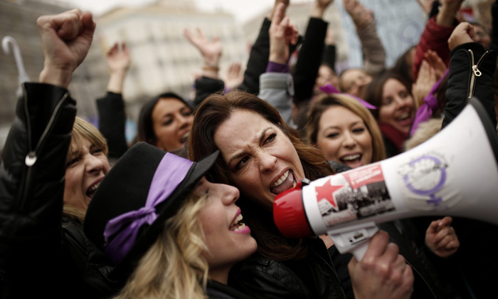Cuộc tuần hành ủng hộ nữ quyền toàn quốc ngày 8/3/2018 tại Tây Ban Nha - Ảnh: AP