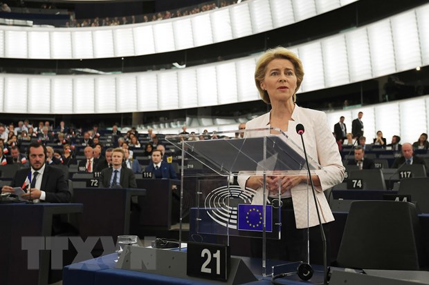 Bà Ursula von der Leyen phát biểu tại Nghị viện châu Âu ở Strasbourg, Pháp ngày 16/7/2019. Ảnh: AFP/TTXVN