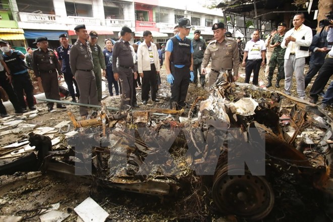 Cảnh sát điều tra tại hiện trường vụ đánh bom xe bên ngoài khách sạn ở Pattani, miền nam Thái Lan ngày 24/8. Ảnh minh họa. (Nguồn: AFP/TTXVN)