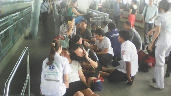 Trung tâm y tế khẩn cấp Erawan của Bangkok báo cáo, có 6 người bị ngất do phải đợi hơn 1 tiếng đồng hồ trên tàu. Điều hòa không khí ngừng hoạt động bởi sự cố mất điện. Theo hình ảnh xuất hiện trên truyền hình Thái Lan, một số hành khách được đưa ra khỏi tàu điện và được các nhân viên cứu hộ hỗ trợ khi họ đến trạm tiếp theo. Đáng chú ý, nhiệt độ vào giữa buổi sáng nay tại thủ đô Bangkok lên tới 35 độ C.