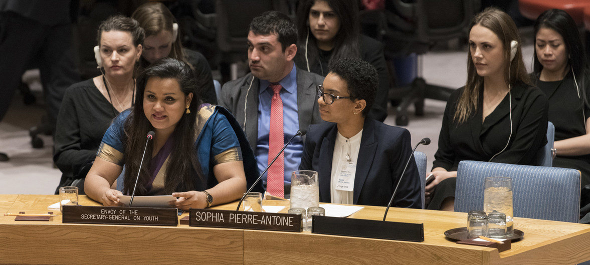 Đặc phái viên của Tổng thư ký LHQ về Thanh niên Jayathma Wickramanayake phát biểu tại cuộc tranh luận mở của Hội đồng Bảo an về thanh niên, hòa bình và an ninh. Ảnh: UN Photo