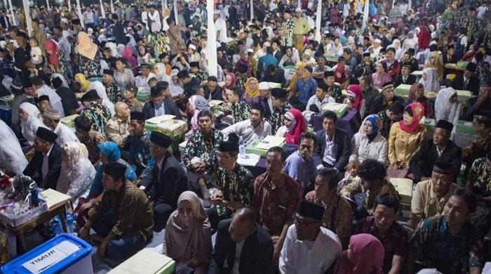 Hàng trăm cặp đôi tham gia đám cưới tập thể ở Jakarta (Indonesia). Ảnh: The News