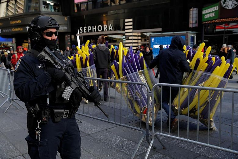 Tuần tra an ninh tại Quảng trường Thời đại, thành phố New York, Mỹ. Ảnh: Reuters