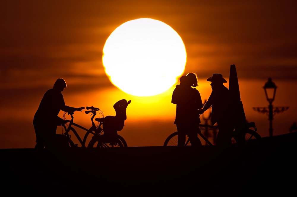 | Người đạp xe vào lúc hoàng hôn gần công viên Olympic ở Sochi, Nga. Ảnh: Sputniknews |