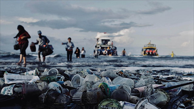 Rác thải nhựa tràn ngập một bãi biển ở Indonesia. Ảnh: Quartz