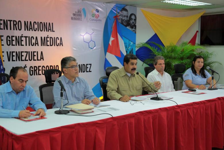 Tổng thống Venezuela (giữa) trong một cuộc họp với các quan chức y tế. Ảnh: Reuters
