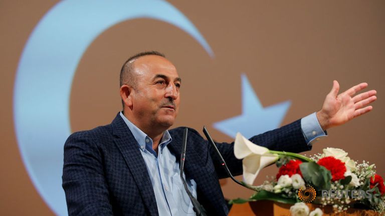 Ngoại trưởng Thổ Nhĩ Kỳ Mevlut Cavusoglu trong một bài phát biểu tại thành phố Metz, Pháp. Ảnh: Reuters