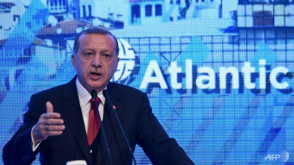 Tổng thống Thổ Nhĩ Kỳ Recep Tayyip Erdogan phát biểu tại Hội nghị Thượng đỉnh Đại hội Đại Tây Dương ngày 28/4/2017. Ảnh: AFP