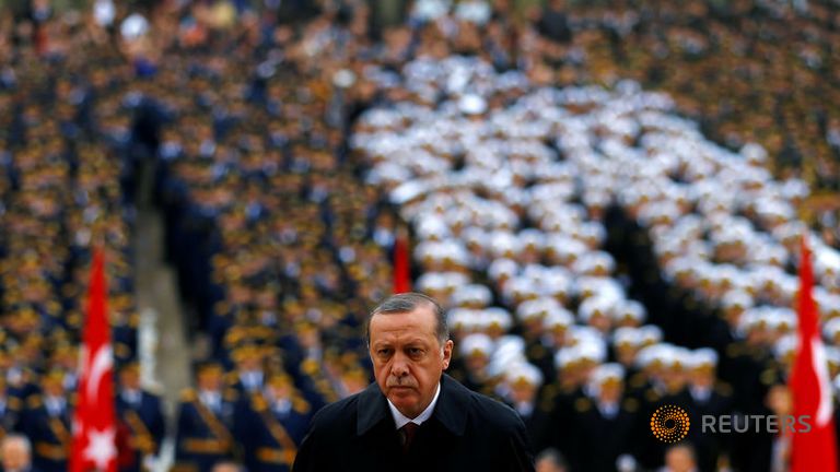 Tổng thống Thổ Nhĩ Kỳ Tayyip Erdogan tham dự một buổi lễ kỷ niệm Quốc khánh nước Cộng hòa Thổ Nhĩ Kỳ hôm 29/10. Ảnh: Reuters