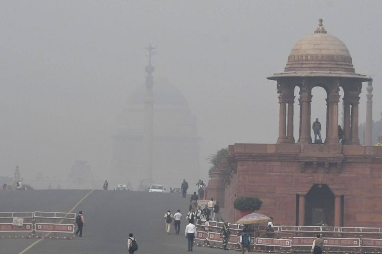Các tòa nhà Chính phủ Ấn Độ ở thủ đô New Delhi bị bao phủ bởi khói bụi dày đặc. Ảnh: AFP