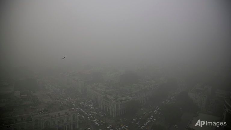 Khói mù dày đặc bao phủ thủ đô Delhi, Ấn Độ suốt ngày 5/11/2016. Ảnh: Reuters